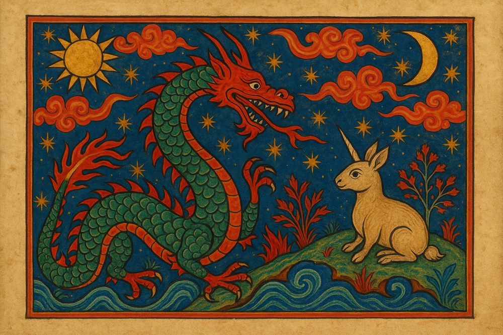Görsel sanat dünyasında ise ortaçağ minyatürlerindeki düz profilden ilham alan ama onu çizgi roman estetiğiyle birleştiren pek çok çalışma var. Özellikle dijital illüstrasyonlarda, ejderhanın karşısında koşan küçük ama kararlı tavşan figürü, güç dengesini tersyüz eden bir imgeye dönüşmüş durumda. Kimi sanatçı bu yaratığı masumiyet ve vahşilik arasındaki sınırda yürüyen bir sembol gibi kullanıyor, kimisi de tek boynuzlu at klişesini kırmak için biraz absürt, biraz komik bir alternatif olarak sahneye çıkarıyor.