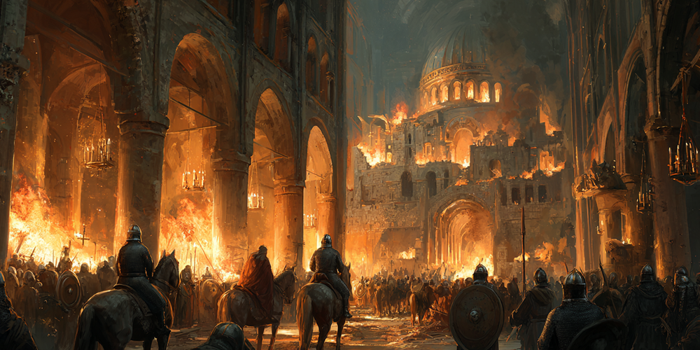 Blakhernai Sarayı, bu karanlık günde sadece yıkıma değil, ihanetin, inanç sömürüsünün ve insanlık trajedisinin de merkezine dönüştü. Saray odaları artık hazine değil korku doluydu. Mozaiklerdeki azizler sustu, avludaki güvercinler uçup gitti.