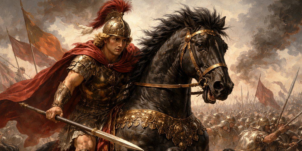 Gaugamela’da (MÖ 331) Pers ordusunun merkezine saldırırken Alexander, atının mızrak ve kılıç darbelerine rağmen hız kesmediğini anlatır. Arrian’a göre Bucephalus birkaç kez yaralanmış, ama geri çekilmemiştir. Alexander’ın ölümsüzlük mitiyle birleşen bu sahneler, çağlar boyunca devam eden bir anlatının en çarpıcı sahneleri olarak öne çıkıyor.