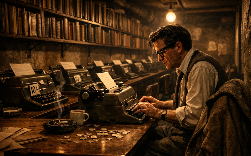 Fahrenheit 451’in doğduğu yer, insanın ilk bakışta bir başyapıta yakıştıracağı türden bir oda değildi. Ray Bradbury Fahrenheit 451 için ilk güçlü taslağını, Los Angeles’taki UCLA Powell Library’nin bodrum katında, bozuk parayla çalışan daktiloların başında yazdı. Ev dardı, para dikkatle harcanıyordu, çocuklar çok küçüktü ve sessizlik lüks sayılırdı. Bradbury, bodrumda yarım saatlik yazı süresi satın alıyor, daktilonun başına geçiyor, sonra yeniden bozuk para arıyordu. Etrafında raf raf kitaplar vardı; aklında ise kitapların ortadan kaldırıldığı bir dünya.