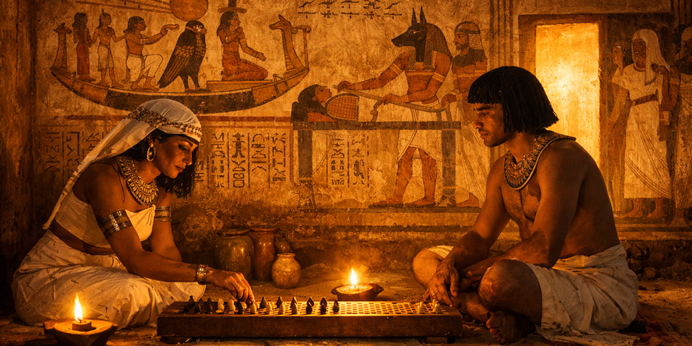 Bir Mısırlı rahip, ölmeden önce tahtanın başına oturuyor olabilirdi. Çakal başlı pimi, dikkatle ilk deliğe yerleştirirken, bunun yalnızca bir oyun olmadığını biliyordu. Her adım, öte dünyanın kapısına bir adımdı. Şen halkasına ulaştığında kazanan o olacaktı; çünkü ölüm artık son değil, ebediyetin bir parçasıydı.