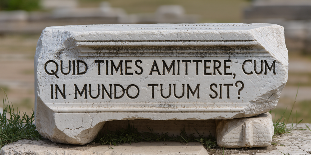 Araştırmak için önce metnin kendisini sabitlemek gerekir. Quid times amittere, cum nihil in mundo tuum sit? gramer açısından kusursuz, klasik Latinceye yakın ama birebir klasik olmayan bir yapı taşır. Cümledeki cum bağlacı nedensel anlam taşır ve ardından gelen sit fiili bilinçli biçimde conjunctivus kipindedir. Bu tercih, cümleyi yalnızca bir tespit olmaktan çıkarır; onu evrensel ve koşullu bir önermeye dönüştürür. Yani burada söylenen şey bir durum bildirimi değil, bir akıl yürütme teklifidir.