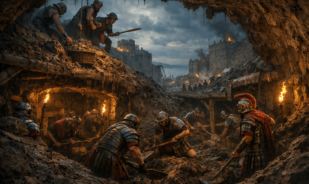 İlk aşamada Roma, tipik üstünlüğünü sahaya koydu: Mühendislik, sabır ve düzen. Kuleler yaklaşırken rampalar yükseldi, ardından duvar diplerinde kazılar başladı. Fakat bu planın kırıldığı yer, taş duvar değil yeraltındaki belirsizlik oldu. Tünel savaşı, lejyon disiplinini görünmez bir korku alanına çekti. Açık arazide saflar bozulduğunda subay komut verebilir; ama toprağın altında duman, karanlık, çökme riski ve dar alan her avantajı küçültür. Themiscyra savunması Roma’nın bu zayıf noktasını yakaladı.
