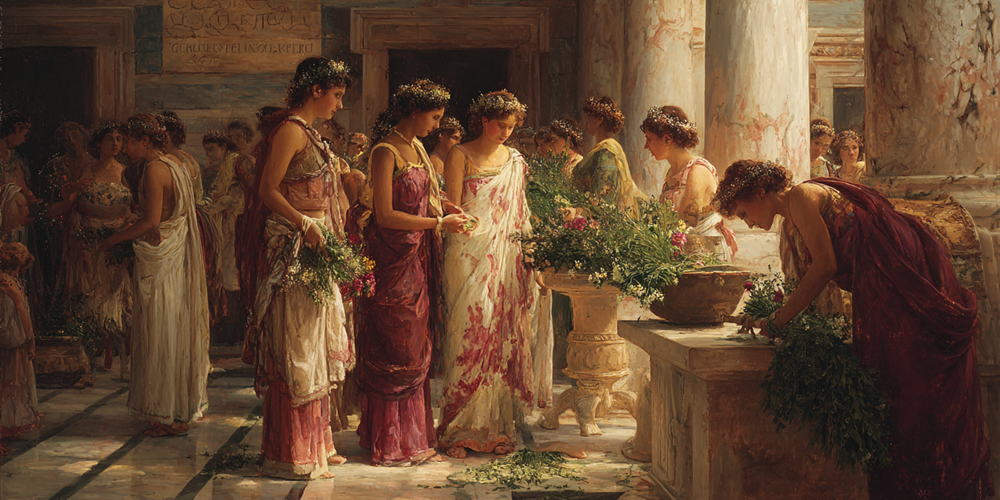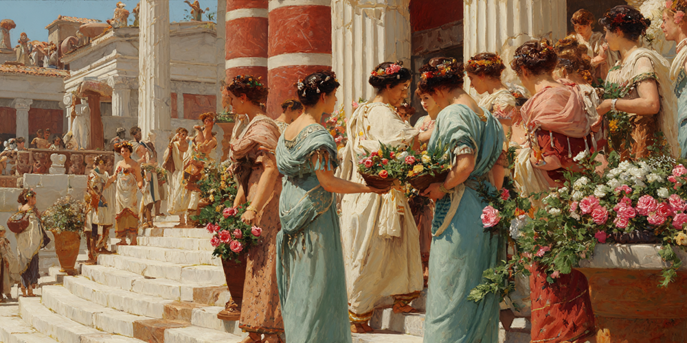 Ovid’in verdiği adaklar da çok somuttur: Mersin, nane ve gül demetleri içine gizlenmiş sazlar. Bu botanik ayrıntılar, festivalin yalnızca metinsel değil ritüel yoğunluğunu da hissettirir. Şarapla ilgili bir bayramın ortasında koku, bitki, süs ve beden dili de yerini alır. Roma dini burada kuru bir ayin kitabı değildir; görsel, duyusal ve toplumsal bir sahnedir.